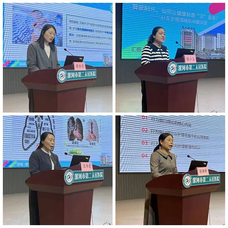 在學術交流環(huán)節(jié),多位護理專家圍繞健康教育的新理念、新方法與新技術展開深入探討。市二院護理部主任高凱霞分享了《健康教育在護理質(zhì)量與安全管理中的核心作用》;市中心醫(yī)院護理部副主任劉素紅講解了《基于賦能理論構(gòu)建三級醫(yī)院健康教育護士健康素養(yǎng)提升路徑》;市六院護理部副主任崔臻以《賦能·融合——構(gòu)建新時代醫(yī)院護理健康教育體系的實踐與思考》為題進行交流;臨潁縣人民醫(yī)院護理部副主任張潁歌介紹了《基于行為窗口理論的護士高效能溝通技巧》;市二院普外科護士長王書霞圍繞《腫瘤患者營養(yǎng)與身心健康:吃出健康,動出活力》展開講解;麻醉手術部副護士長莫敬敬探討了《基于指南的靜脈治療健康教育及溝通模式》;小兒外科骨干護士張小玉則就《智能時代,如何讓健康科普“活”起來?——AI在護理領域的創(chuàng)新實踐》進行分享。專家們結(jié)合臨床實例,展示了健康教育的最新成果與實踐經(jīng)驗,內(nèi)容充實,視角多元,為參會者帶來深刻啟發(fā)。