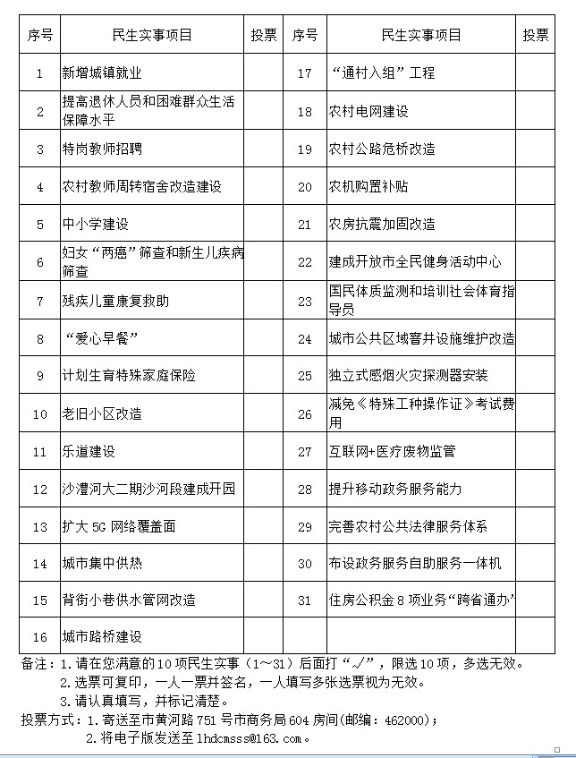 登錄“漯河手機報”“漯河日報”“漯河小城生活”“漯河發(fā)布”、“漯河督查”微信平臺,進入“2021漯河·群眾最滿意的民生實事”評選活動公告進行投票。